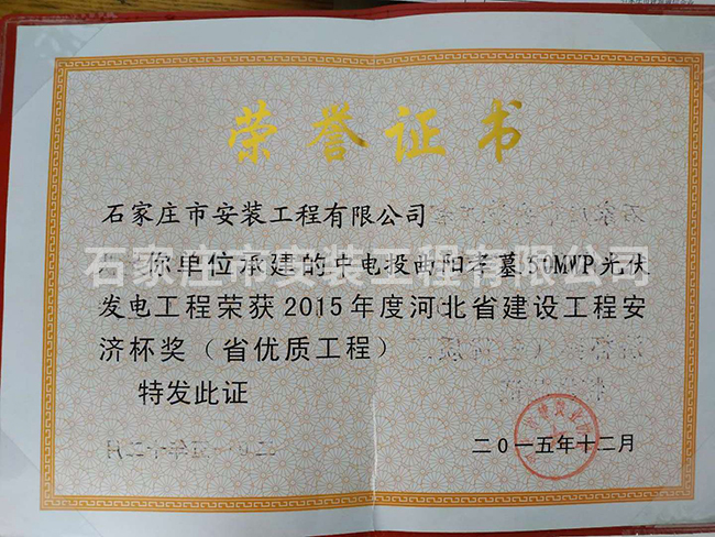 2015年度河北省建設(shè)工程安濟杯獎(省優(yōu)質(zhì)工程)